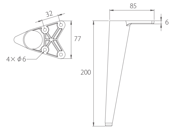 | 000-001-069 | 73 | B548-220-100 | スタイリッシュな脚金物 | 亜鉛ダイカスト アルミニウムグレー |