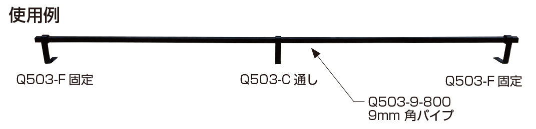 ※ Q503-Fは固定式です。D901-2六角レンチを使用して固定用止めねじを締め、角パイプを固定します。