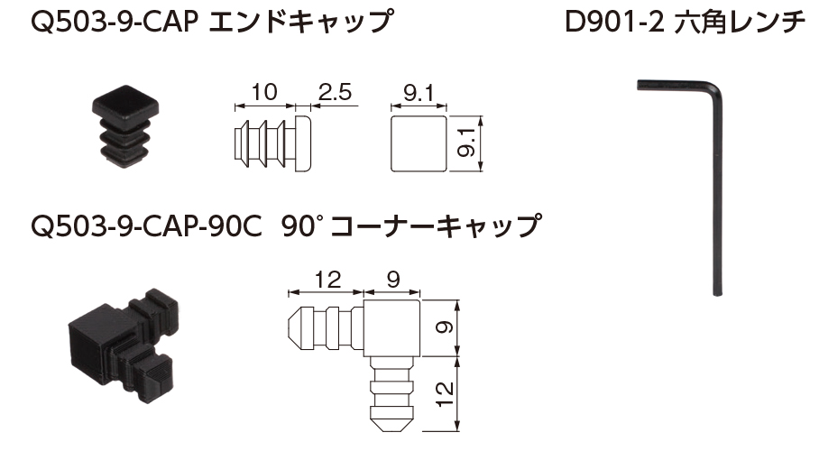 | 000-041-978 | Q503-9-CAP-90C | 90°コーナーキャップ | PLA 黒 |