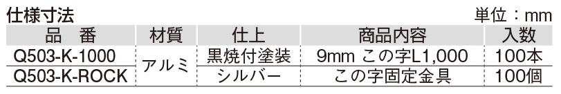| 000-007-031 | 373 | Q503-K-1000 | 9mmこの字L1000 | アルミ 黒焼付塗装 |